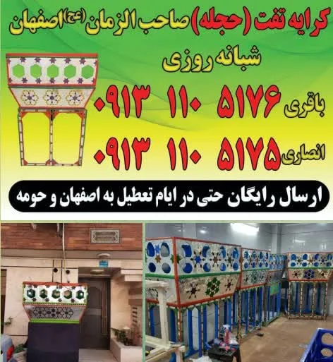 کرایه و فروش تفت (حجله ) به سراسر کشور توجه داشته باشید همه تفت ها نو هستند و بدون هیچ شکستگی یا خرابی همراه با پارچه مشکی رایگان با پایین ترین قیمت ممکن در اصفهان ارسال رایگان به سراسر اصفهان حتی بیرون از شهر مثل(مبارکه ، فلاورجان، فولاد شهر ، باغ بهادران و...) با نازلترین قیمت در کل استان به صورت شبانه روزی در هر ساعت از شبانه روز فقط با یک تماس با بیش از 30 سال سابقه درخشان زیر نظر خیریه اصفهان