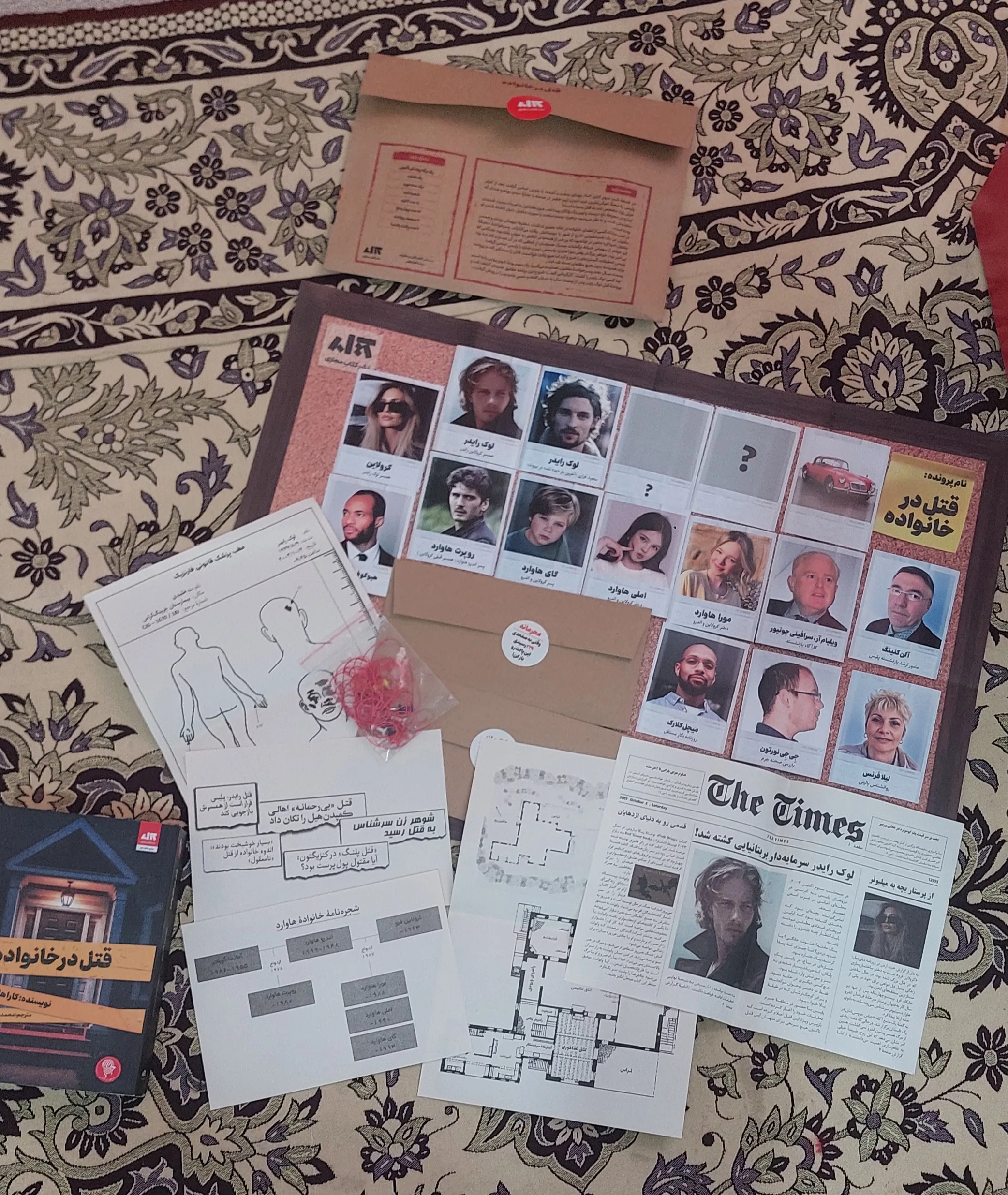 تعداد صفحات: ۶۶۴ نشر: کتاب مجازی ژانر: مرموز و جنایی همراه با پرونده ی جنایی=> یک برگه پزشک قانونی، یک نقشه، یک عدد بورد، شجره نامه، ۱۴ عدد کارت، ۱۳ عدد پونز و نخ، ۳ صفحه روزنامه، ۲ عدد پاکت راهنما